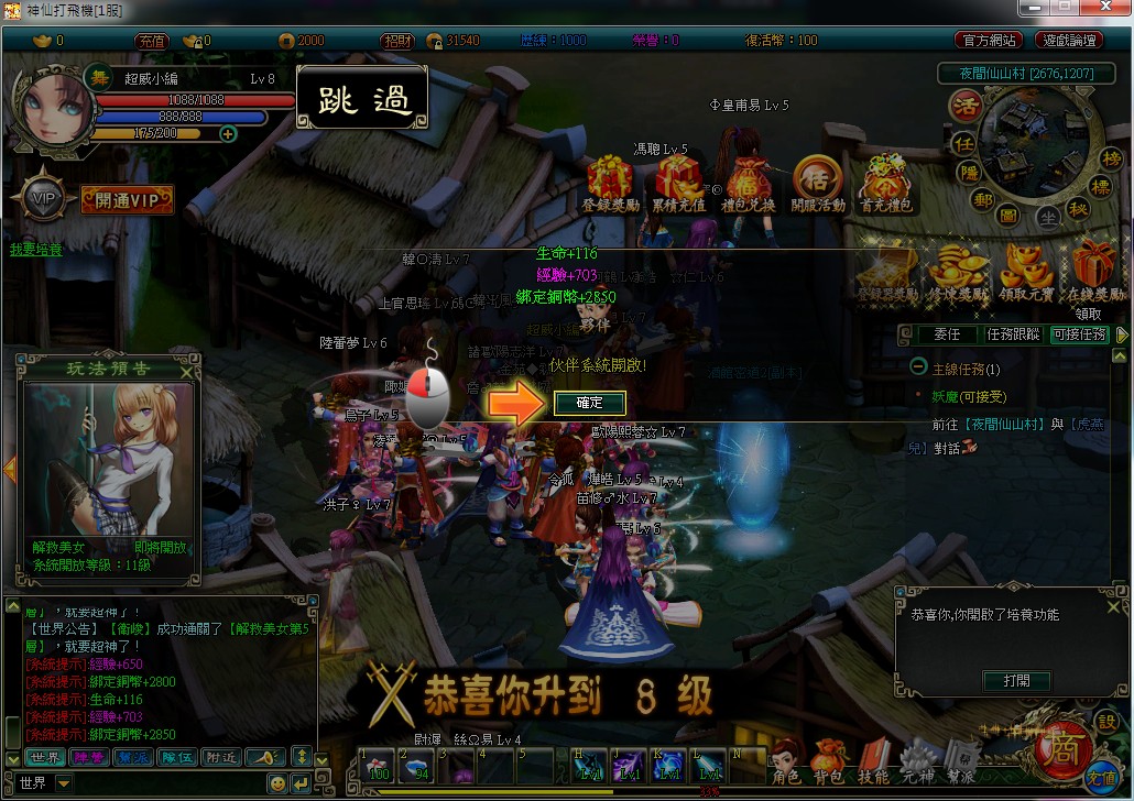 進入遊戲後,玩家將在系統的引導下了解各項操作,直到完成 30 級新手引導任務所贈送的獎勵。除此以外,只要累積一定的遊戲在線時數,還可以領取系統贈送的登入獎勵道具等多項大獎。