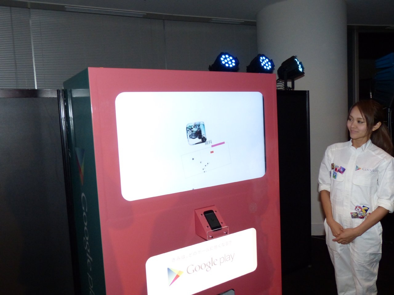 活動首先是由 Google 的執行役員岩村水樹說明活動的主旨。根據她的說法,這次的活動主要是欲向全世界許多玩家傳達出日本開發者的熱情,而將這個目的實體化的東西就是 Google Play 應用程式的「自動販賣機」。