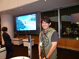 可在自動販賣機上購買數位產品這點,外觀上很有衝擊力呢。一開始還以為有人在裡面。雖然家用遊戲通常都是用遊戲雜誌以及網路媒體來宣傳,但手機的情報傳達方式還有不懂的地方,所以像這樣的形態,並且是在涉谷這個年輕人的街道上展開這點,真的很讓人感激呢。