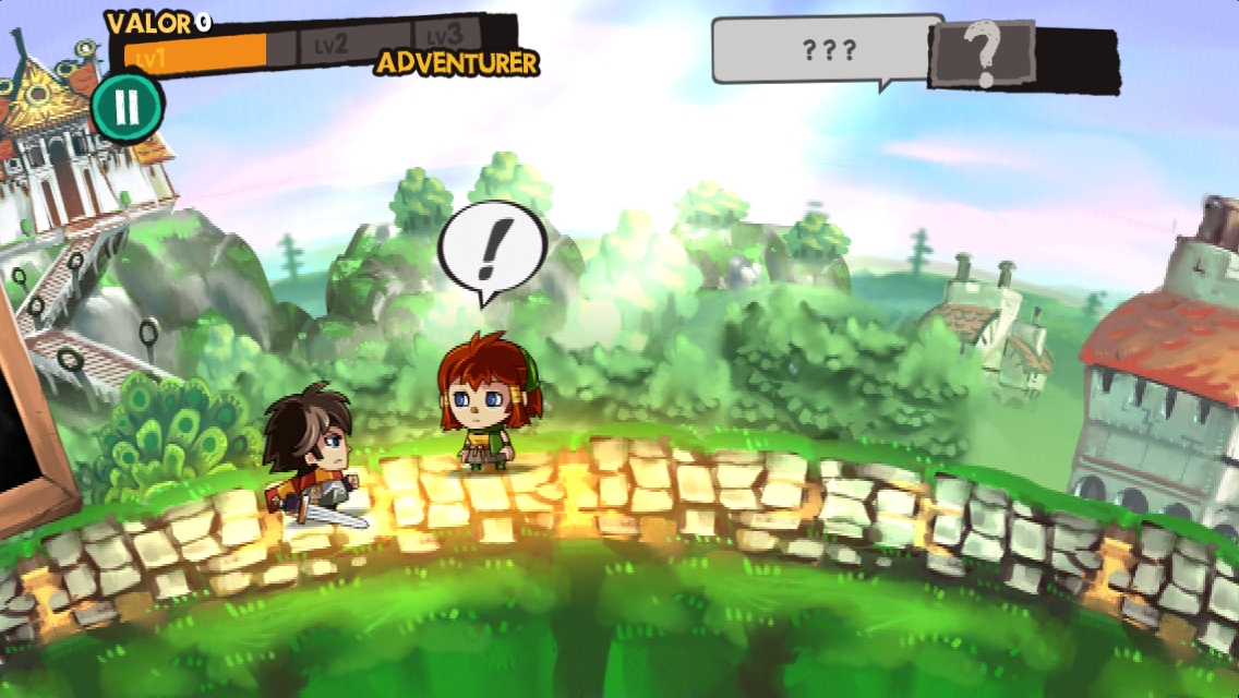 一開始在遊戲畫面中,玩家可以看到作為主角的劍士自動的行走在圓弧狀的地面上,其間則有村民擋在路邊,提供像是收集路上道具、或著斬除擋路魔物的各式委託。玩家在此要以手指觸控螢幕接下任務,然後盡可能的操作角色完成目標,直到最後抵達關卡終點破關。
