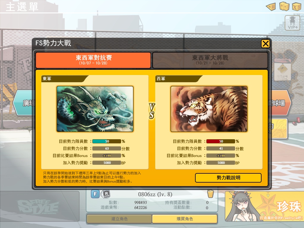 FreeStyle Online》遊戲中,選擇東西軍任一勢力後,即可獲得「特殊角色贈送卷」、「魔法銅球×5」等…超豐富虛寶好禮!