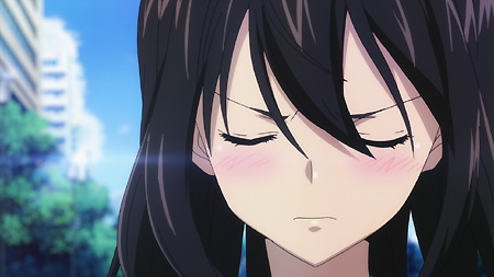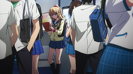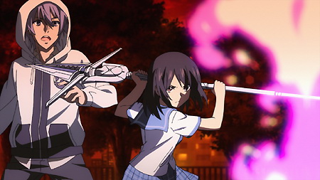 第一話以相當日常的方式切入主角曉古城的生活,再加上女主角姫柊雪菜的登場,第一話中雪菜因為內褲被看到而臉紅的場景,看起來相當可愛。而古城因為吸血鬼體質,早上難以早起、又容易低血壓,看到女生的脖子、大腿、內褲時,為了抑制吸血衝動還會流鼻血,也是頗有趣的設定。而再加上使用了不少難以理解的辭彙,參雜英文的發音,加上右腕之類的設定,因此被許多觀眾笑說主角其實只是個青春期的中二病而已吧?