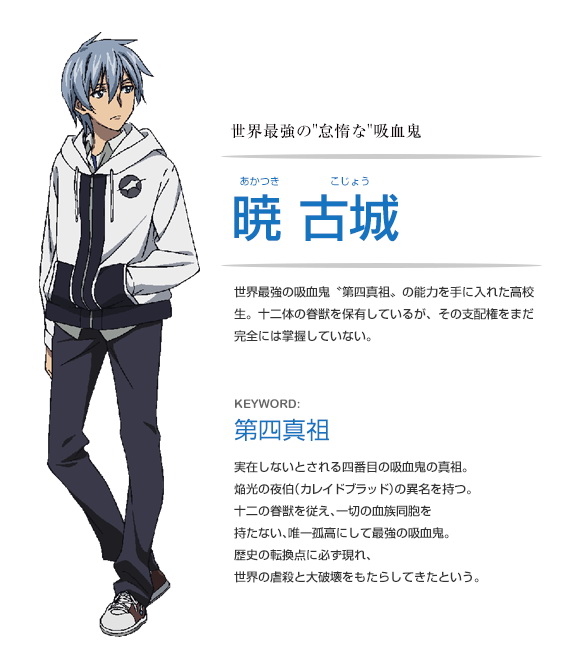 雖是為人所恐懼的第四真祖,但古城原本只是個人類。菜鳥吸血鬼與見習劍巫,加上古城的同學天才程式設計師少女、以及帶有謎團的女性教師,與世界命運有關的戰鬥即將展開。雖然設定上看起來相當複雜,充滿了許多不熟悉的辭彙,不過探索這些設定及過去,也是故事的重點之一,因此對觀眾來說,應該不會造成太大的困擾。