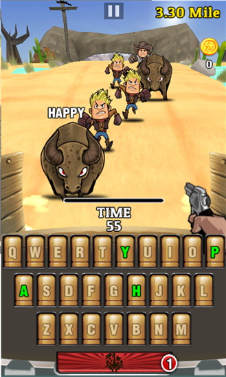U" 的惡棍集團。過程裡鍵盤上還會提示英文字母位置,對於拼字苦手的玩家也能盡情享樂,而且 Combo 數越多馬車跑得越快,挑戰玩家在短時間內的鍵俠功力、取得驚人成績。