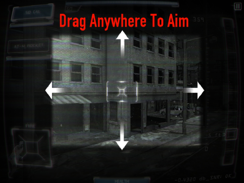 射擊遊戲最重要的操作方面,相較於一般使用重力感應或陀螺儀操作的遊戲,在本作中則仍以較傳統的觸控畫面滑動方式轉移視角,左下角點擊開火鍵發射子彈,並能切換機槍與火箭砲等不同武器闖關。