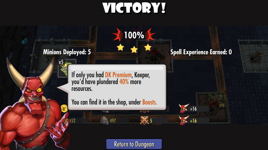 雖然說遊戲基本上不課金也能夠體驗到所有的遊戲內容,但這類型的遊戲比拼的就是誰的資源較多,誰的地城擴張的較快!而遊戲中也有販賣一些強化玩家能力的道具,這邊可能就會在一定程度上大大的拉開課金與非課金玩家的差距。
