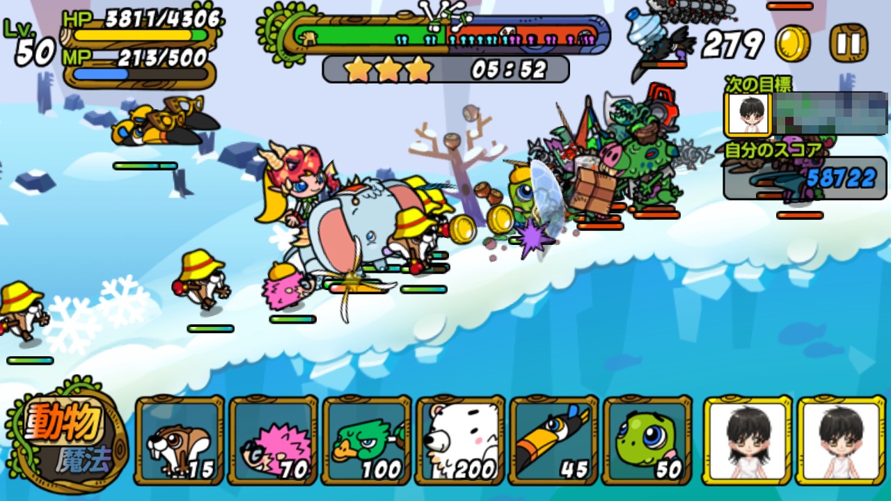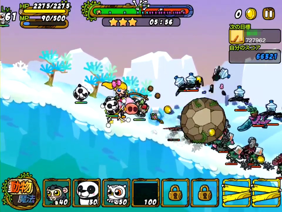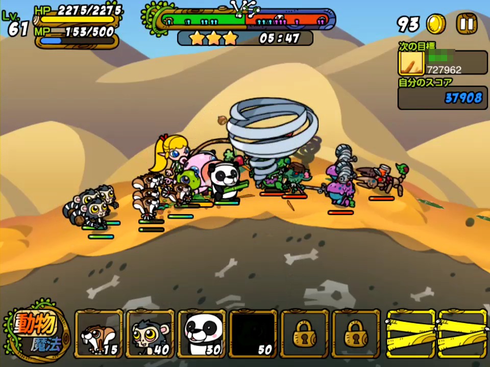 遊戲的主要流程就是挑戰關卡獲得報酬,然後再用報酬來強化我方動物們以及基地,或是購入魔法來準備戰力挑戰下一個關卡。另外,突破幾個關卡後,可使用的動物們也會慢慢增加。
