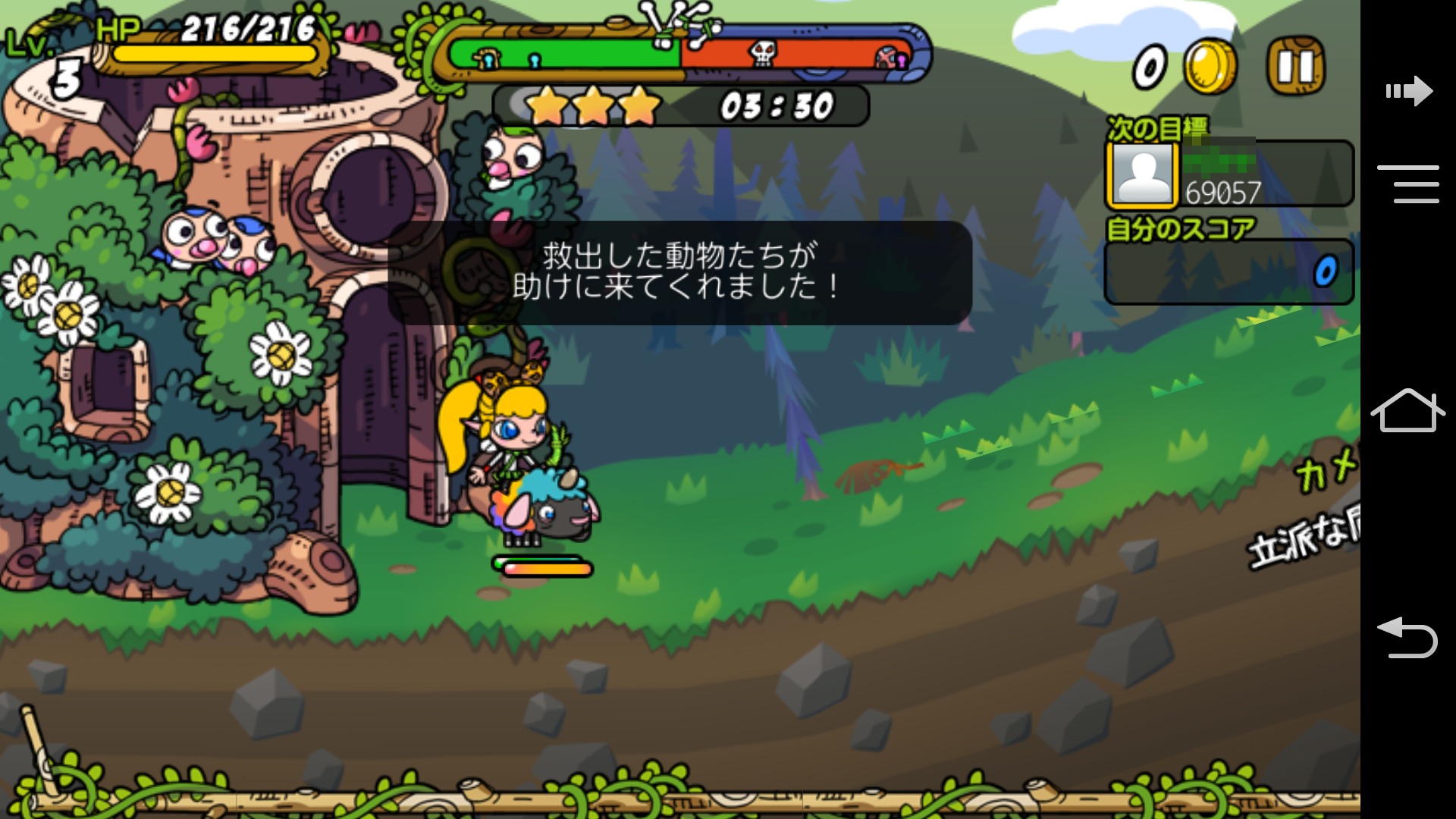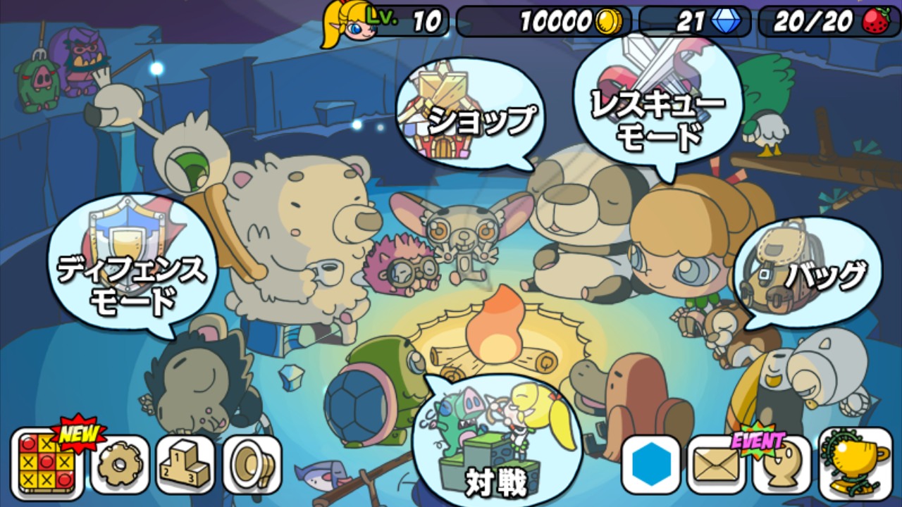 防衛模式的難度有稍微提高,所以一開始先在救助模式中多多收集可使用的動物們會比較好吧。同時進行滿足特定條件時可拿到獎章的「任務」以及「賓果」的話,效率就會更好吧。存到某種程度的資金時,就購買動物跟露露的裝備品,再強化基地的話,就可以挑戰困難的關卡了。