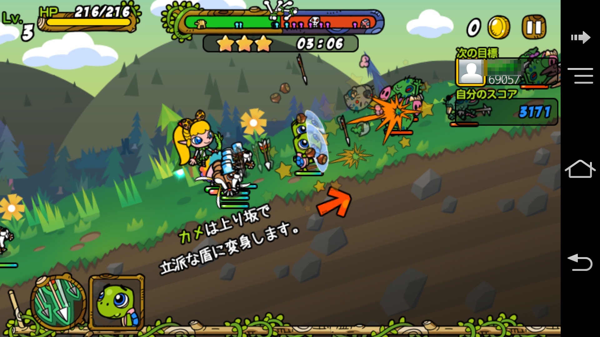 烏龜在上坡可以用盾牌守護我方