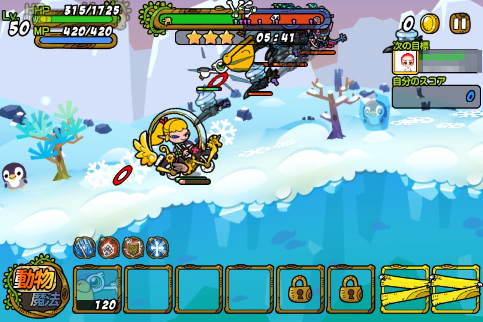 露露在召喚動物時以及使用魔法時必須使用「MP」,這也是會隨著時間恢復的。要大量召喚雖然比較弱但代價低的動物,還是要召喚一隻雖然強力但代價高的動物。請一邊思考戰況一邊來決定想要召喚的動物吧。