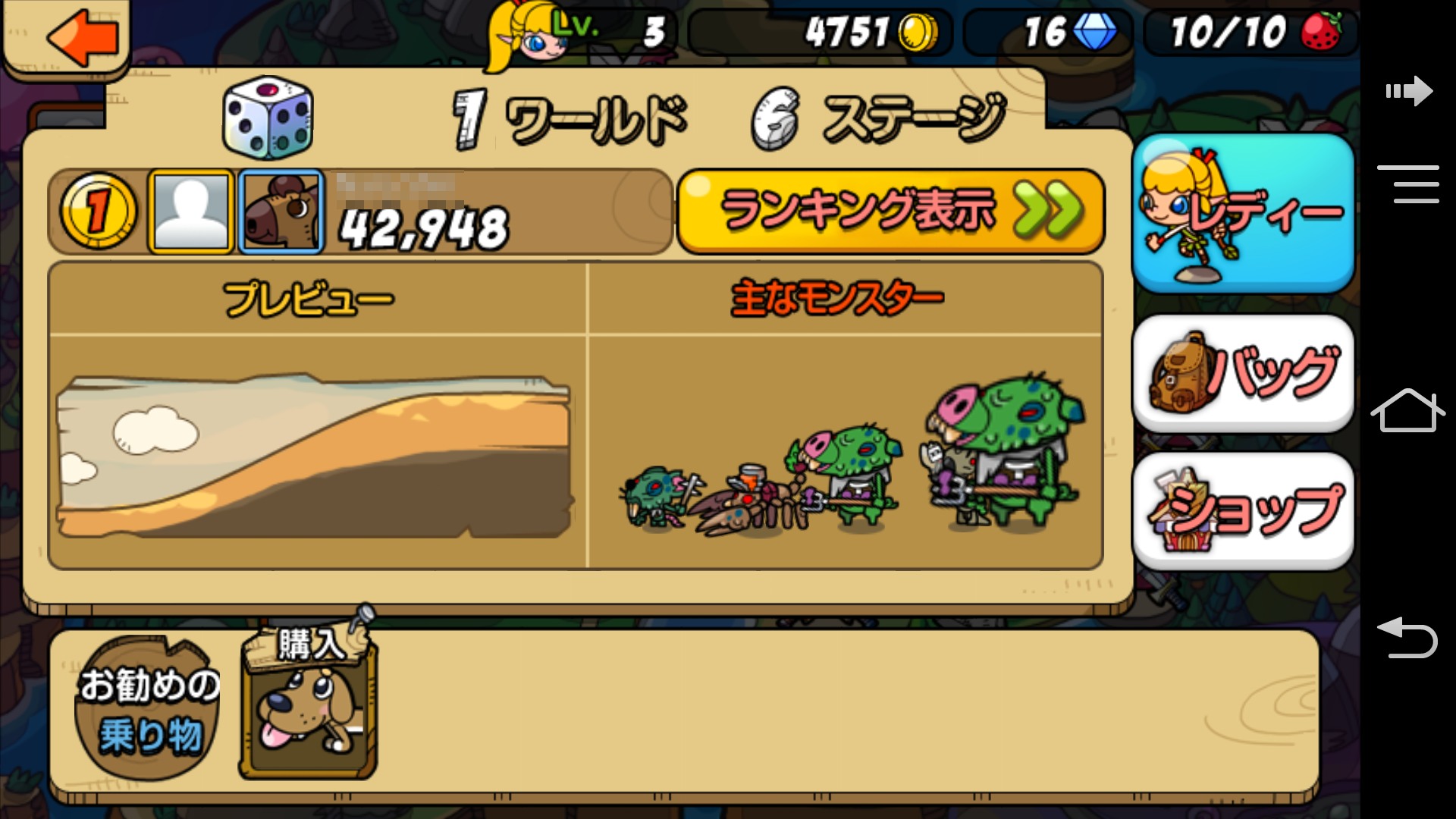 雖然露露的裝備有著等級限制,不過動物用的裝備就沒有等級限制了,可輪流給其他動物使用。在商店購買的時候,優先購買動物的裝備,只要穿上更好的裝備,在攻略關卡上就會比較輕鬆一點。在裝備之中也有著隨機追加能力的裝備,這也是遊玩的樂趣之一。