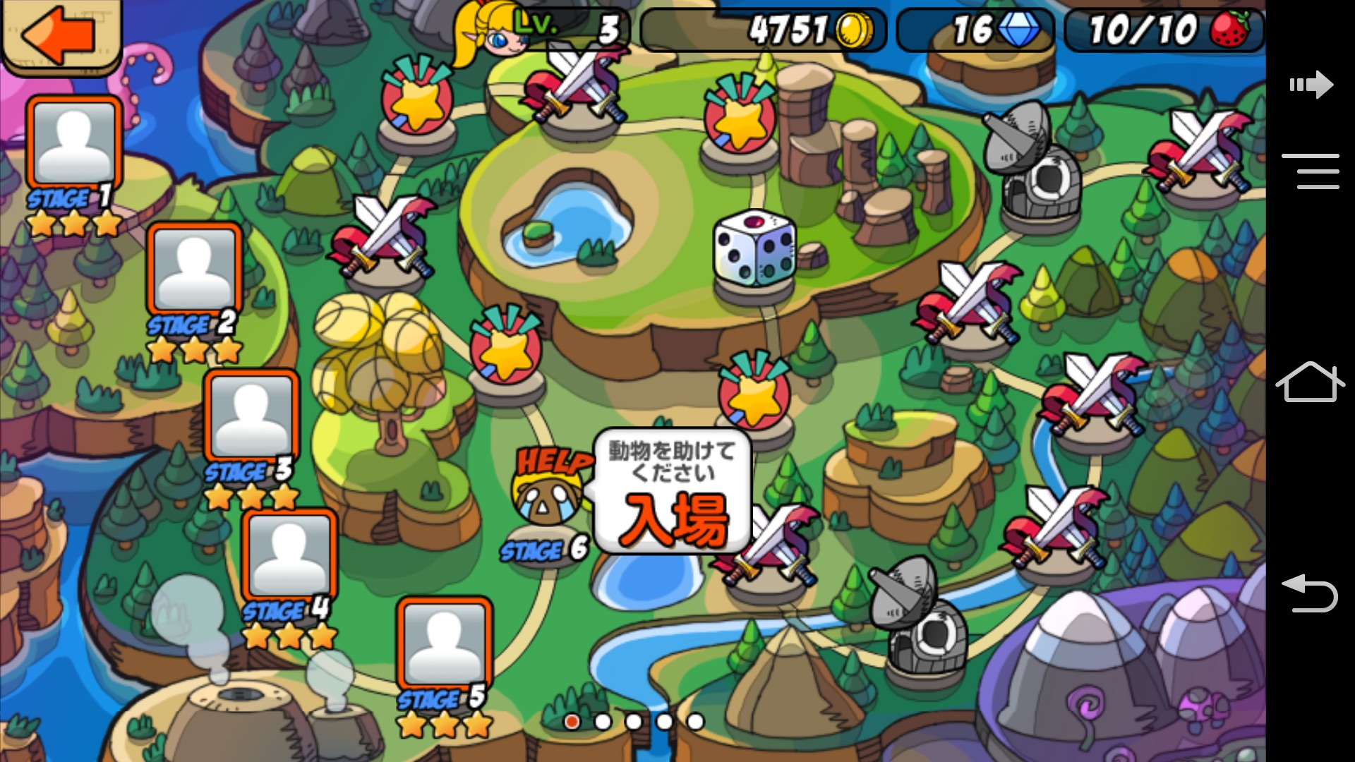 而要開始攻略關卡時,需要「草莓」,這個草莓也就是代表行動力的數值,會隨著時間經過恢復。玩家也可請朋友贈送草莓,並且在攻略關卡時,也可用來召喚朋友的動物們來當援軍,與許多朋友們一起遊玩的話會更有利。另外,在測試遊玩的時候,雖然突破了許多關卡,但草莓並沒有用完過。在這部分似乎設定的比較緩和一點的樣子。