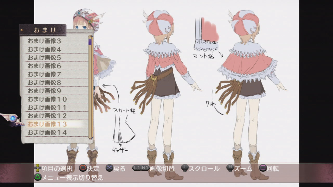 額外圖像是PS3版跟PS Vita版共通的。 收錄來自《梅露露的鍊金工房Plus》的圖 服裝介紹