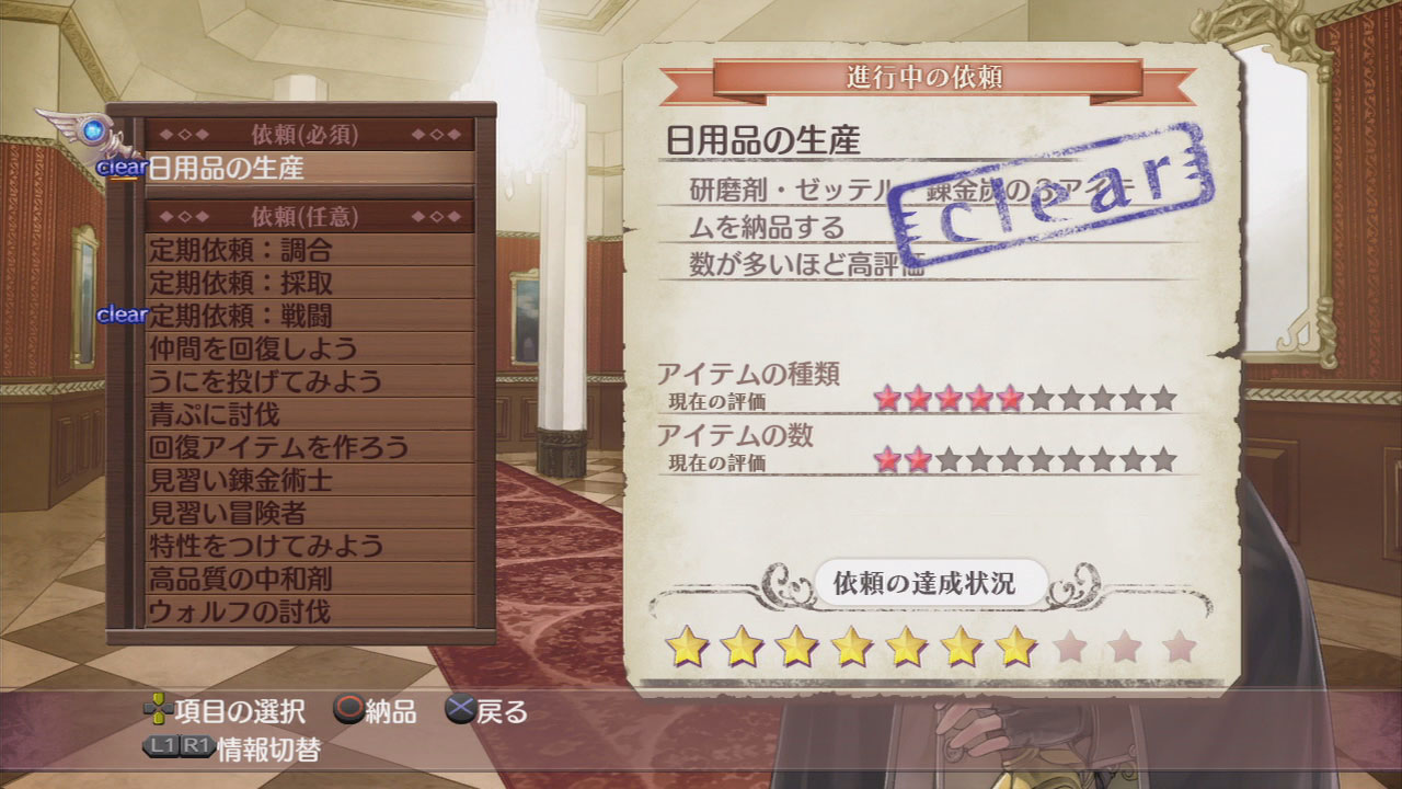 只要上繳所指定的道具就算達成。有固定達成所需的評價跟道具種類數量。