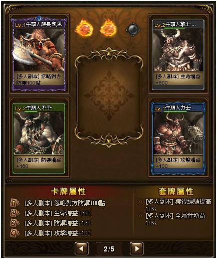 卡牌系統第一期,推出“增益多人副本屬性”的牛頭人套牌與“增益迷宮類副本屬性”的亡靈套牌;