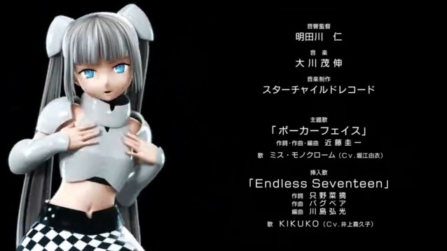 除了造型外,單色小姐的配音也經過處理,讓聲音聽起來更像是人造人。故事輕鬆有趣,能夠一邊吐槽一邊笑是本作的優點之一。另外,ED 曲的畫面也用上了在堀江由衣的演唱會中,出現的 3D 影像,動作相當的活靈活現,也許在之後的動畫中也能期待這方面的演出?