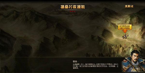 完成首項考驗任務後,玩家便可回到陳留,接受新的主線任務「樓桑村救援戰」。這個任務與一開始的平寇副本不同,「樓桑村救援戰」是需要玩家去探索的劇情副本。