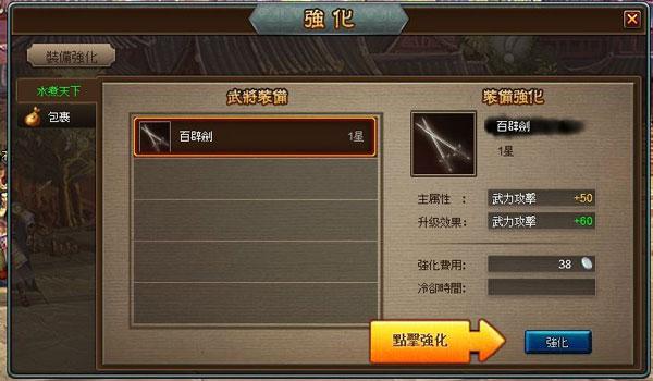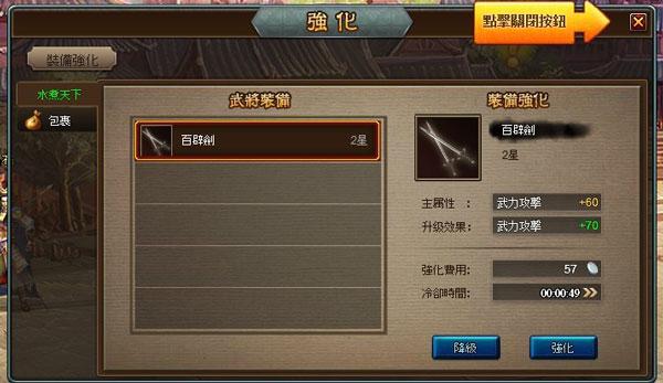 消耗銀幣可成功強化裝備,想要再次強化裝備需要等待一定的冷卻時間