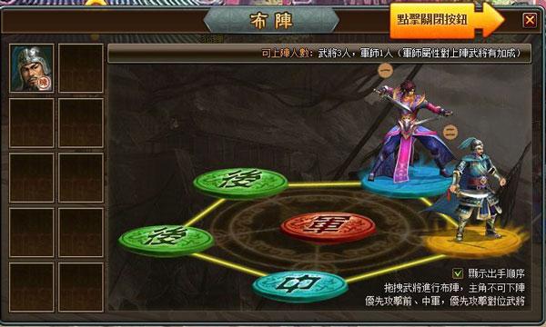 系統根據出戰武將的陣位與屬性決定其出手順序