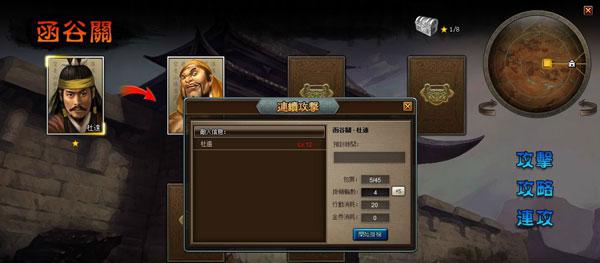 關卡中的最後一個武將是需要重複挑戰的,隨著挑戰次數增加,武將的品質也將提升,進而挑戰難度增大