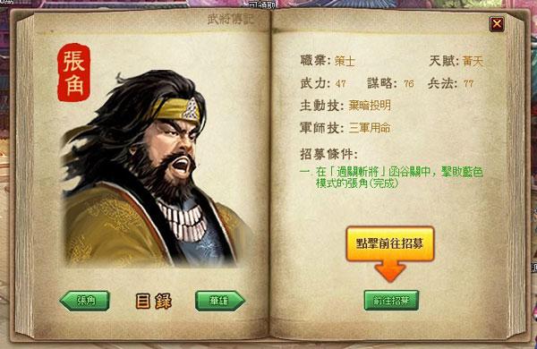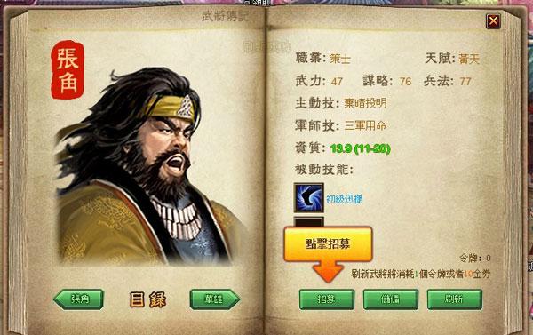終於招到第一個軍師張角,可處於中間的軍師位,在戰鬥中施展軍師技