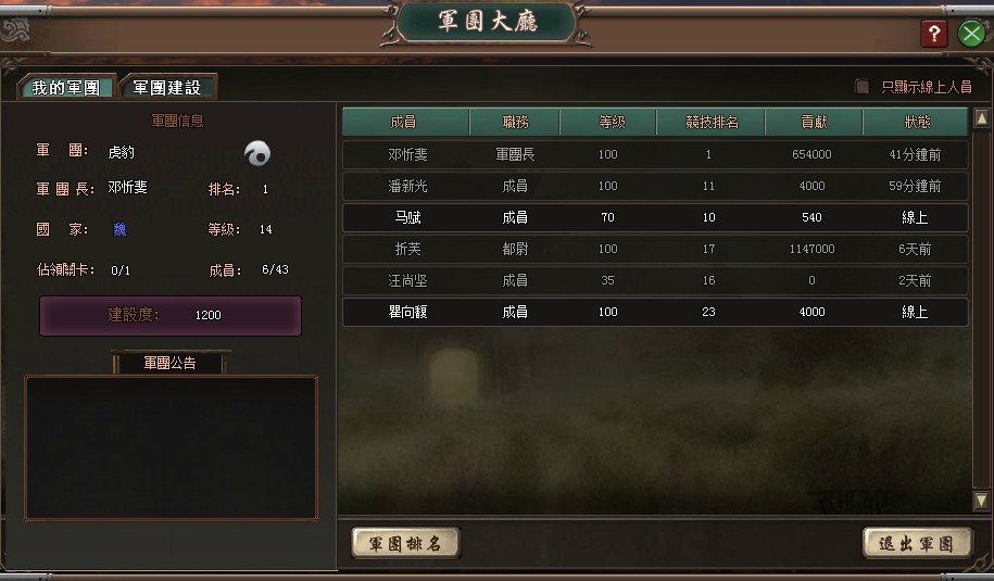 軍團大廳功能