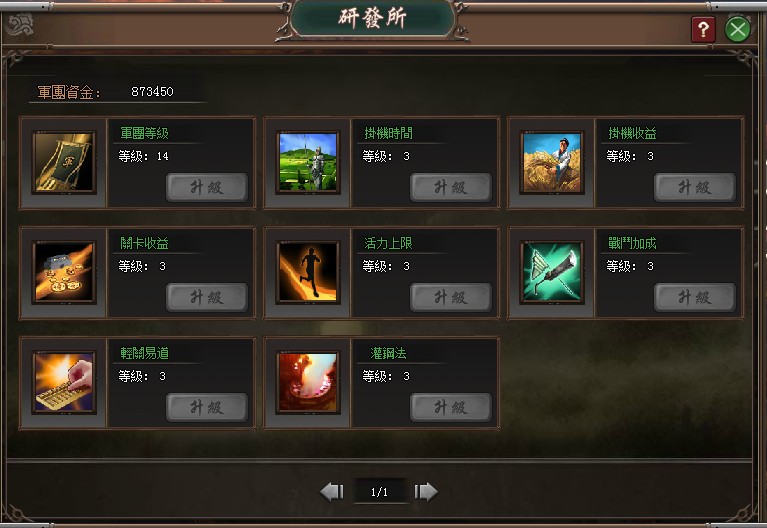 研發軍團科技所在,包含軍團等級在內,還有延長掛機時間,提升關卡收益、掛機收益、行動力上限、PVP功勳獲取加成等科技,將隨著軍團等級的提升陸續開啟,科技將左右額外獲得的資源,微小的差距累積而來將是巨大的懸殊,故不可忽視。
