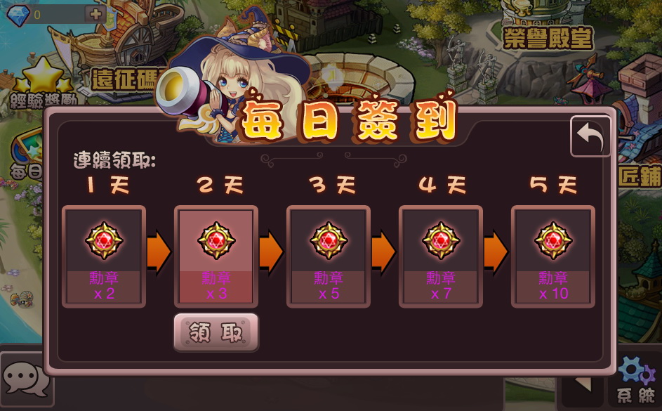 每日上線只能用戰鬥可獲得,無法用金錢買到的榮譽勳章