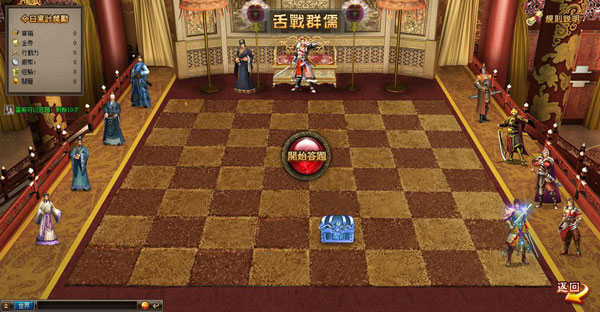 君主只要點選殿堂中央的「開始答題」便可挑戰舌戰群儒題庫,值得注意的是,無論君主在外戰績如何彪悍,在公平競爭的舌戰群儒殿堂上,所有君主一視同仁,都只能擁有每天十次的答題機會。