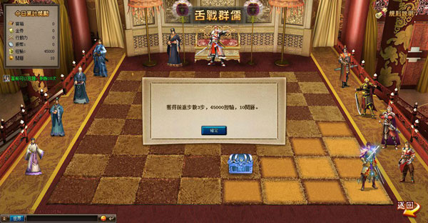 在仔細閱讀隨機出現的題目後,君主便可選定答案進行提交,如答案正確,君主便可獲得相對的前進步數以及經驗、閱歷、功勳等豐富獎勵,若不幸答錯,君主就只能接受系統贈送的安慰獎唷!
