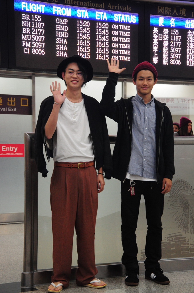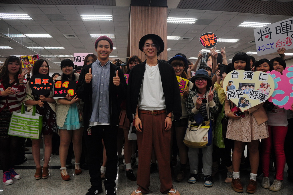 19 日當天菅田將暉與野村周平兩人一出關就引發機場騷動,許多前來接機的粉絲蜂擁而上,更聽到眾人興奮的呼喊與尖叫聲。此次菅田在台停留兩天一夜,野村停留三天兩夜。一出機場之後,先是享用飯店附近的上海料理,接著馬不停蹄接受多家媒體訪問,傍晚並還現身最多高中生聚集的西門町,於九五樂府舉辦「面對面簽名會」。現場早就擠滿數百位粉絲,最早甚至有清晨 6 點就來排隊。可惜菅田因為還有另外的行程安排,所以並未出席本次見面會,而由野村一人代表為粉絲簽名。然而個性隨和的野村,面對粉絲索取簽名、送禮或合照通通來者不拒,甚至還開口用中文與粉絲問好,大方展現親和力。
