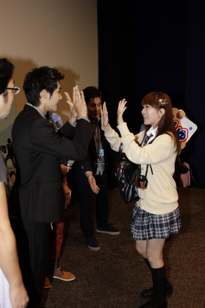 與參加首映會的粉絲合影