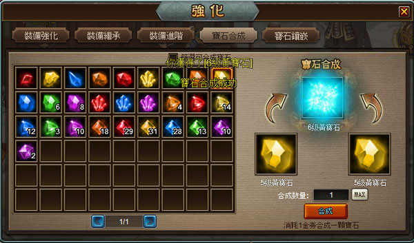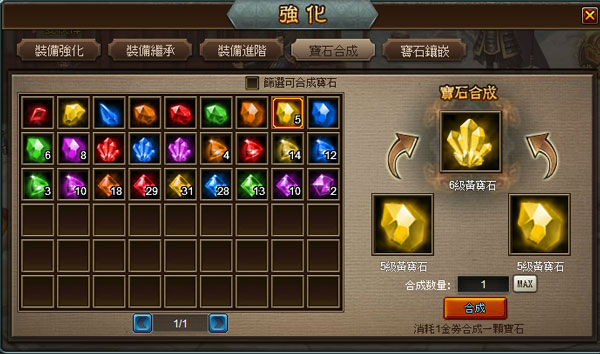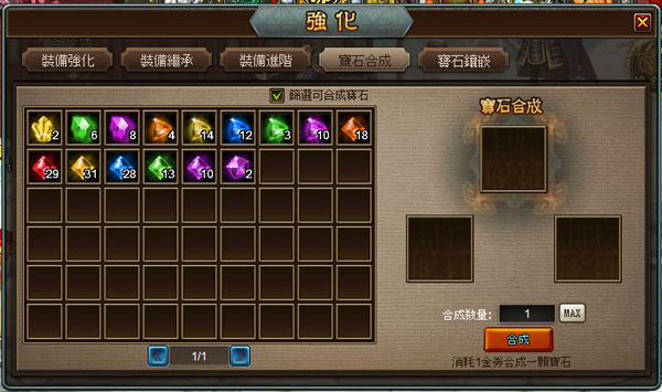 寶石合成介面,可通過打勾知直接篩選可合成寶石喔
