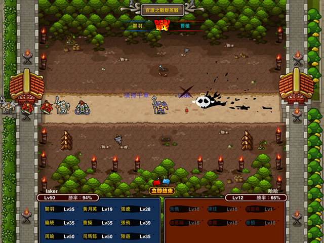 梟雄的誕生怎能少得了戰爭的廝殺。擁有了自己的軍隊之後,快快帶領屬於您的兵馬征戰四方,奪取屬於自己和軍團的榮耀和利益吧!群英戰副本將是你的參戰之處,起初可派出 3 名武將參戰,其後會逐步遞增到 9 名。遊戲其他對手,會以帳篷的形式出現在地圖中,即時發動攻擊進行 PK 戰鬥吧!獲勝可得數量不等的銀兩、功勳、經驗。挑戰對手的等級越高,獲勝後得到的獎勵越高。