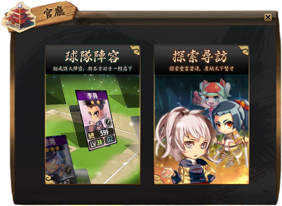 激鬥棒球魂》中,玩家可於官廳選擇探索尋訪,並挑選一個適合自己球隊的行動方針,為球隊決定方向,只要有出發就有機率獲得想要的武將,自己的未來自己去探索!