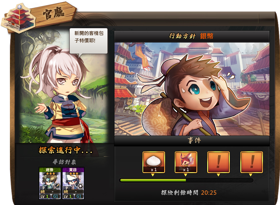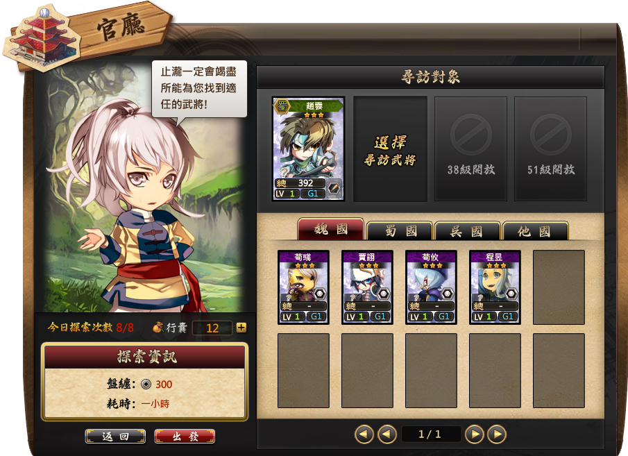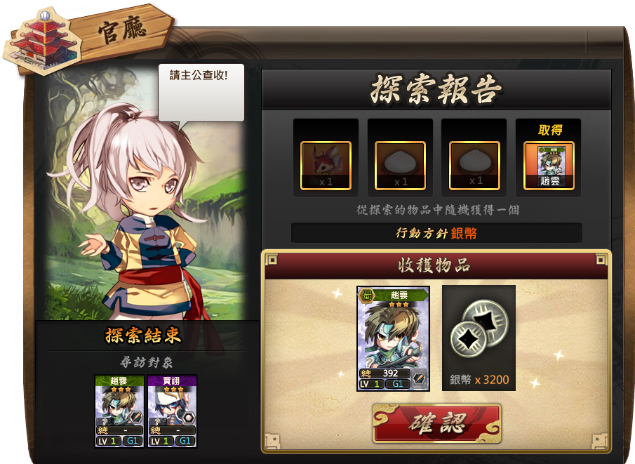 探索結束後會隨機獲得一樣道具,說不定會剛好獲得選擇的武將呢!