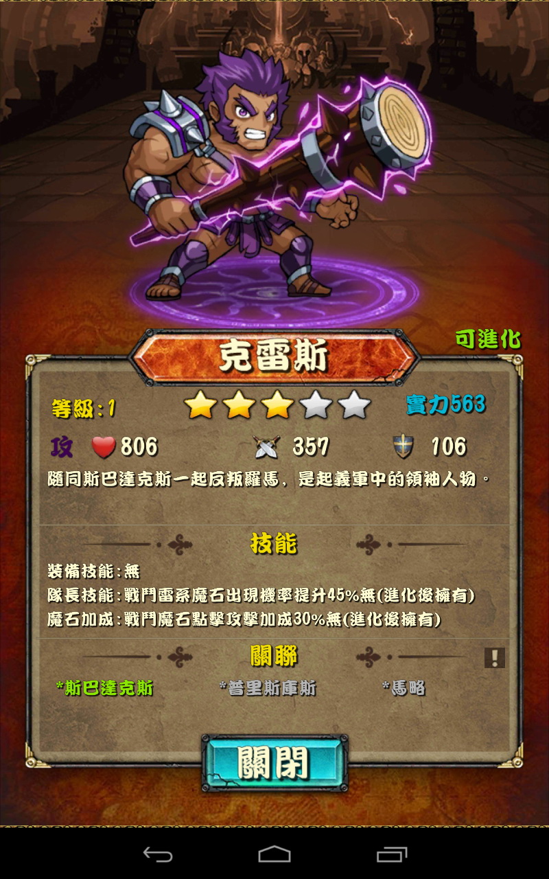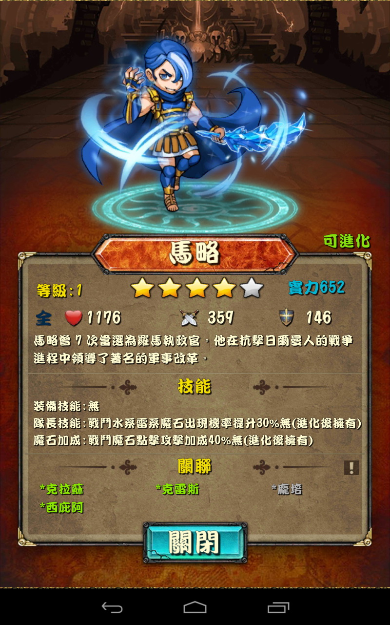 高稀有度的武將除了具備較好的素質之外,其所可以發動的技能都需要透過進化來開啟,但這點條件就可能比較嚴苛一些,因為要進化武將需要具備另外一名相同的武將,可能就需要一些運氣才能完成條件。但一旦進化完成,有些武將的進化技能則可提高特定寶石的掉落機率,這邊應該可以大幅強化玩家達成高 Combo 的能力。