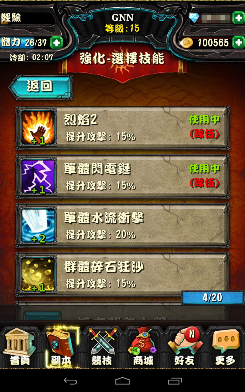 關於武將養成的部份,遊戲也提供了另外一種強化武將的能力!藉由讓英雄穿上各式各樣的裝備與技能,玩家將可打造客製化的武將。就裝備來說的話可能比較單純,就是讓英雄的血量與攻擊力更高,但就技能這部份變化則更多,有些技能可提供強力的單體攻擊,有些則可發動全體攻擊,讓玩家在隊伍調整上有更高的自由度。