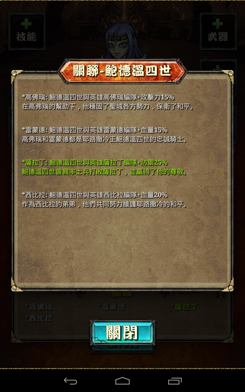雖然高稀有度的武將在一定程度上保證了玩家的隊伍強度,但五星以下的武將也非無用武之地。透過遊戲的英雄關連系統,將友好的武將放至同一隊伍中將可大幅強化隊伍能力,這點對於不課金的玩家來說也是相當有幫助的系統。