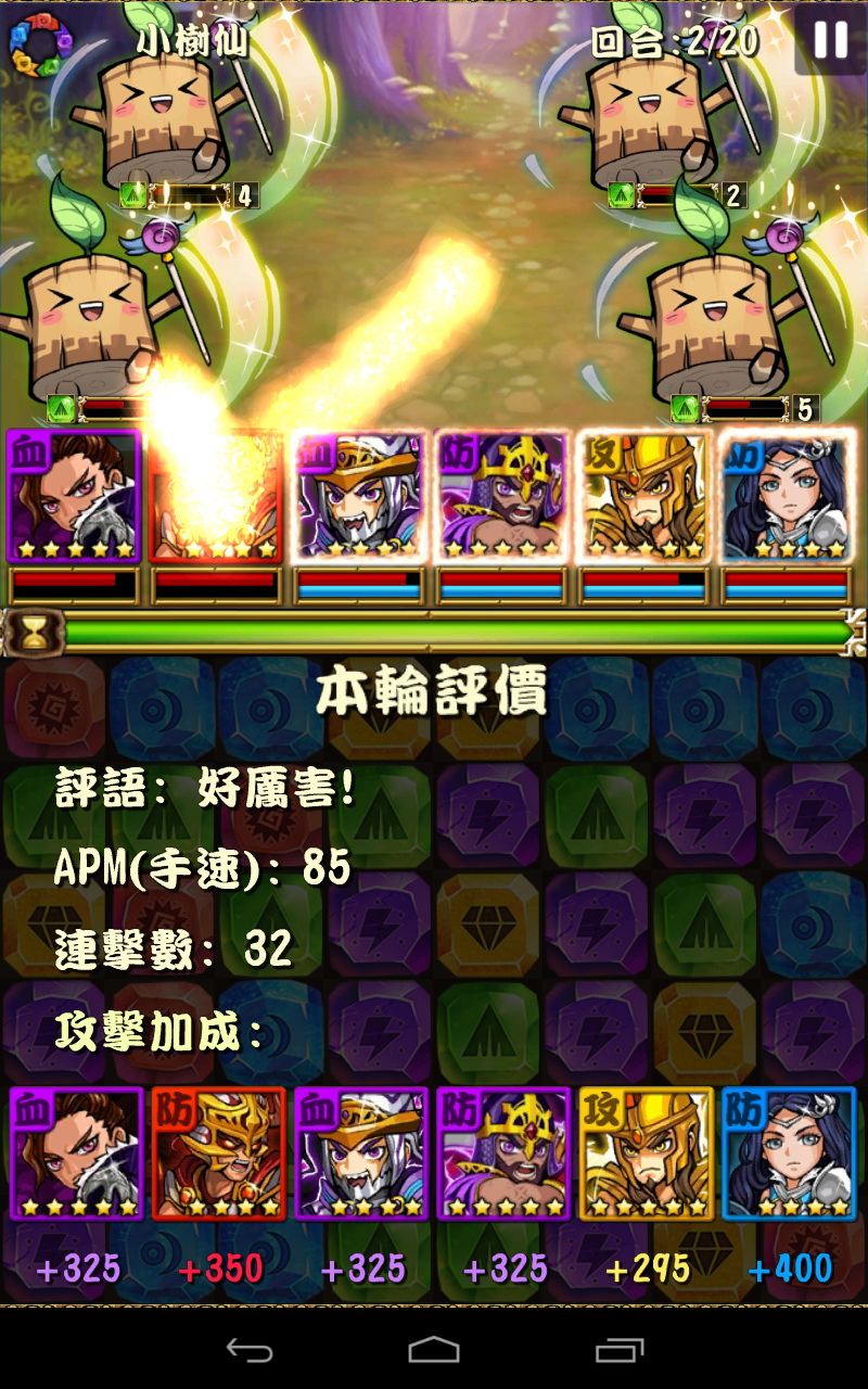 若是消除掉隊伍中武將所對應的寶石顏色,即可給予該武將攻擊加成。值得注意的是,若是一回合達成的寶石 Combo 愈多,英雄的攻擊力也會愈高。