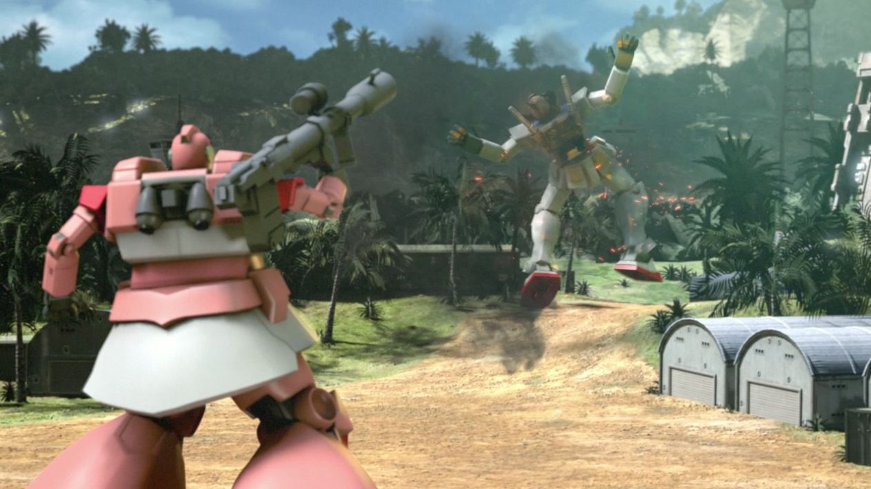 初代鋼彈佩戴著代表共鬥遊戲象徵的那個頭盔的模樣,請務必注意喔。