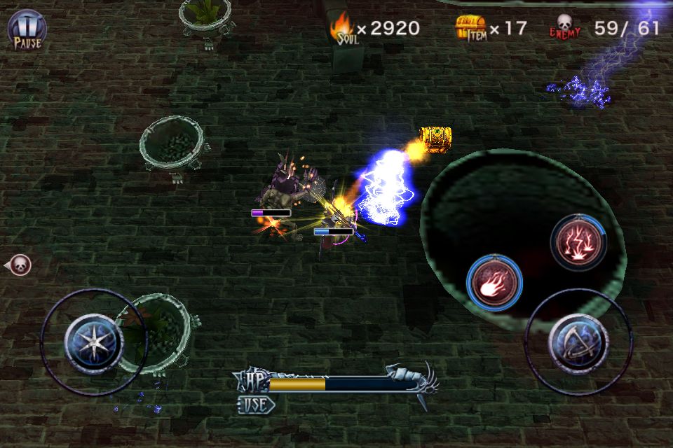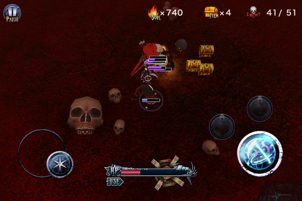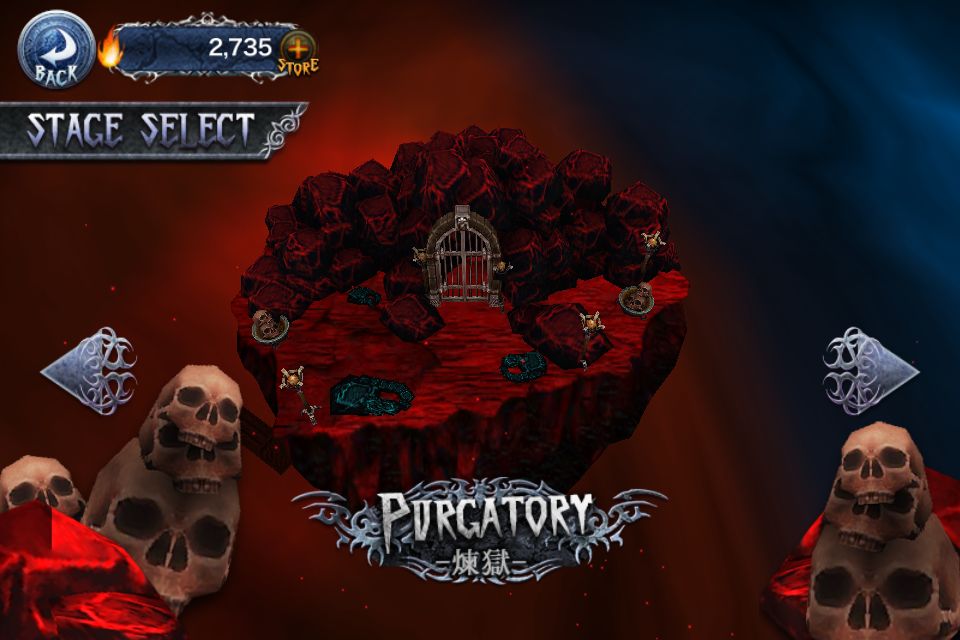 而遊戲是以一關關的方式進行,共有七大關卡,100 道小關。每個大關都有不同的場景,像是一開始幽暗的死者之國,火焰的煉獄,以及地上世界等等。過關的方式就是擊殺全部的敵人,每次過關就可以獲得升級技能及購買道具裝備的靈魂,另外也會收集到製造裝備的各式材料。