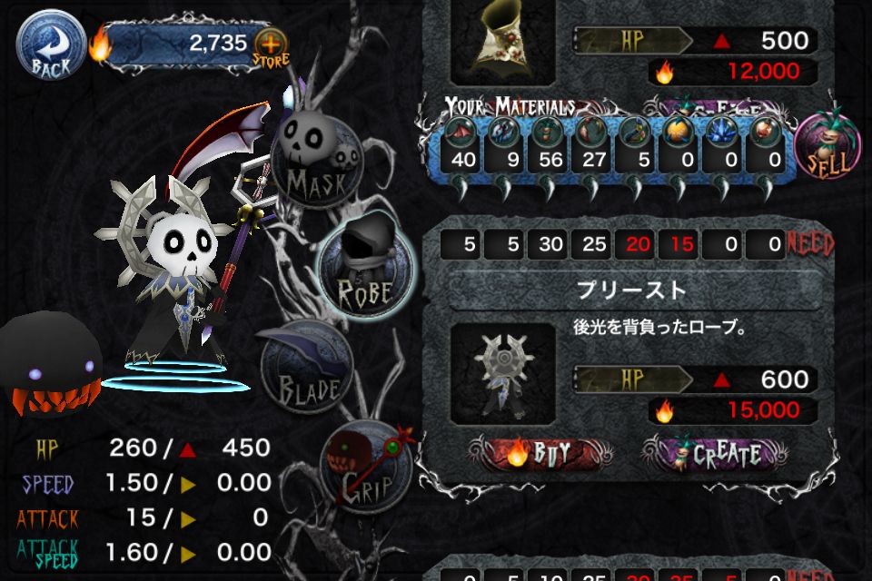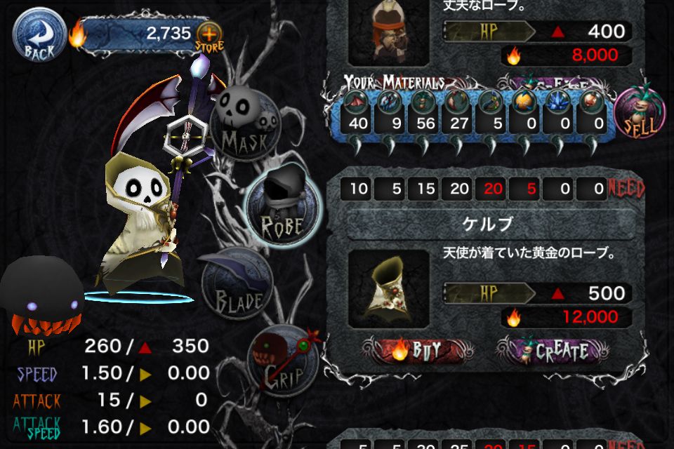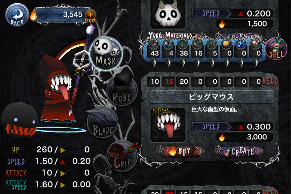 裝備可以用靈魂購買,也可以收集材料來製造。最有趣的是每一項裝備都有獨特又有創意的造型,更換刀鋒後連攻擊時的衝擊波也會變得不同。對於重視角色外型的玩家應該是一大吸引。