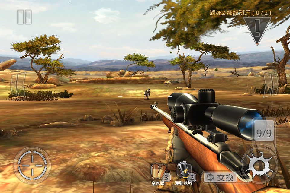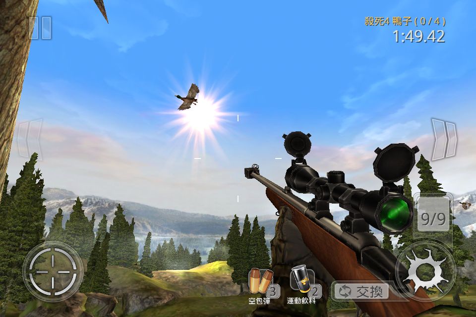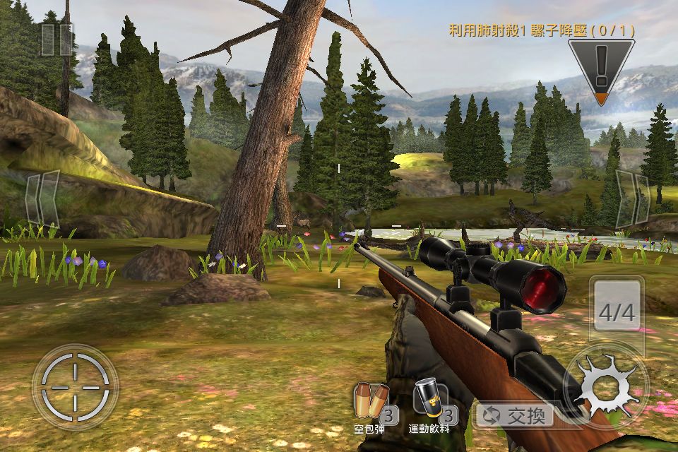 遊戲採用第一人稱的方式進行,狩獵時可以左右移動尋找合適的狙擊位置,透過滑動螢幕則可以調整觀看的角度。使用狙擊槍類型的武器時還可以切換到瞄準鏡,放大畫面並且能夠調整放大的焦距。基本上對準獵物扣下板機擊中獵物之後,就可以完成任務通過關卡。