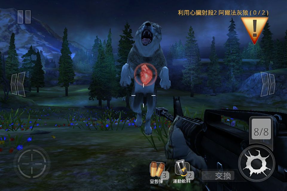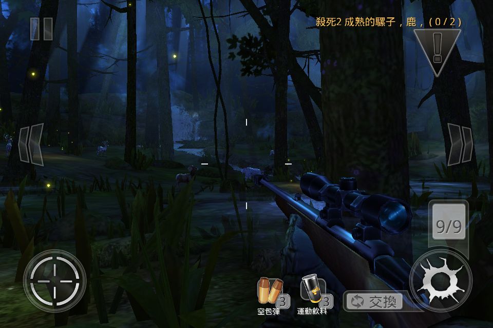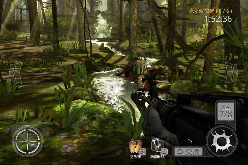 除了大自然的 3D 場景栩栩如生之外,狩獵的目標也不像遊戲名稱一樣只有獵鹿而已,還包含了各種不同類型的野生動物,像是受到攻擊會向玩家衝來的野狼,或是在天上飛的鴨子。不同類型的動物就需要點不同的狩獵技巧喔。