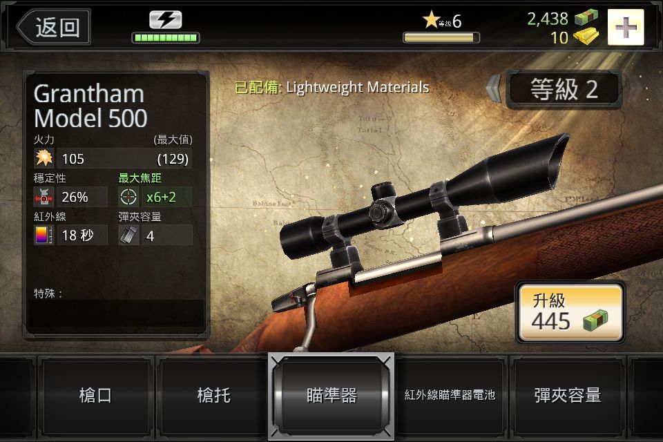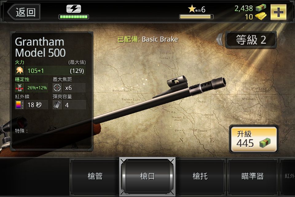 每種類型的槍枝底下都還有許多種不同的槍可以選擇,並且每一把槍都可以進行細部的屬性強化,像是強化槍管時可以提升傷害,而強化槍托則可以提升穩定性,強化的畫面除了是用細膩的 3D 畫面來呈現,每次強化也會看到外觀上的改變,給人一種很專業的感覺。