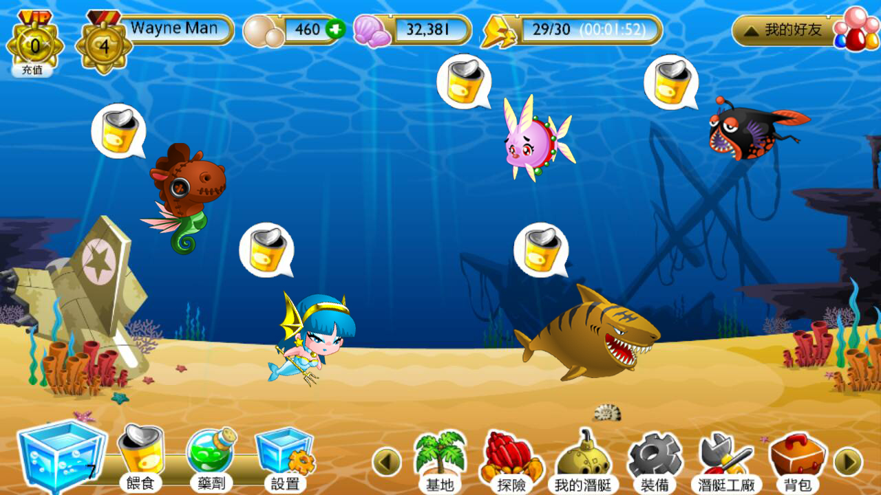 每日上線除了去海底世界捕捉新的收藏魚和將收藏魚放到自已的魚缸慢慢培養外,更可以點擊下方的好友圖示又或者直接輸入好友的FB ID來進入好友的小窩觀賞他努力收集的收藏魚,更可以利用以下的方和好友互動。