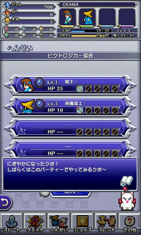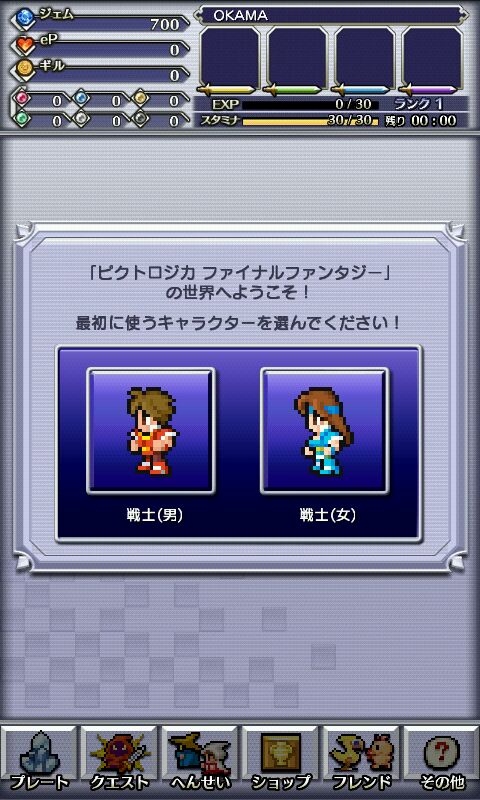 玩家一開始要選擇扮演男戰士或女戰士,並開始進入新手教學的關卡,在新手關卡中莫古里也會親切的教導玩家如何來進行遊戲。在進入任務讀取的時候,就可以聽到《Final Fantasy》的音樂,筆者在聽到《FF6》的戰鬥曲時忽然一陣雞皮疙瘩。