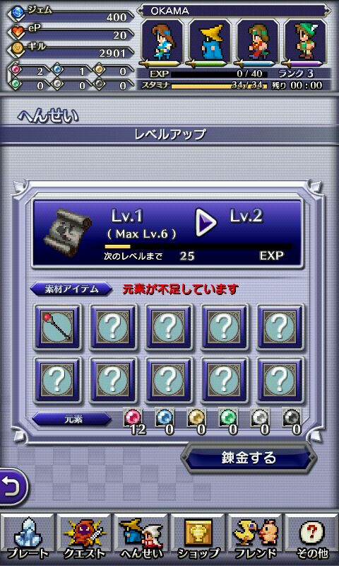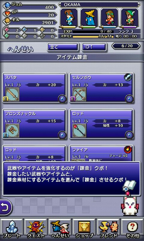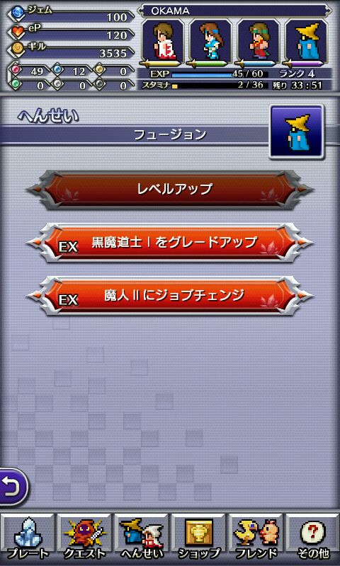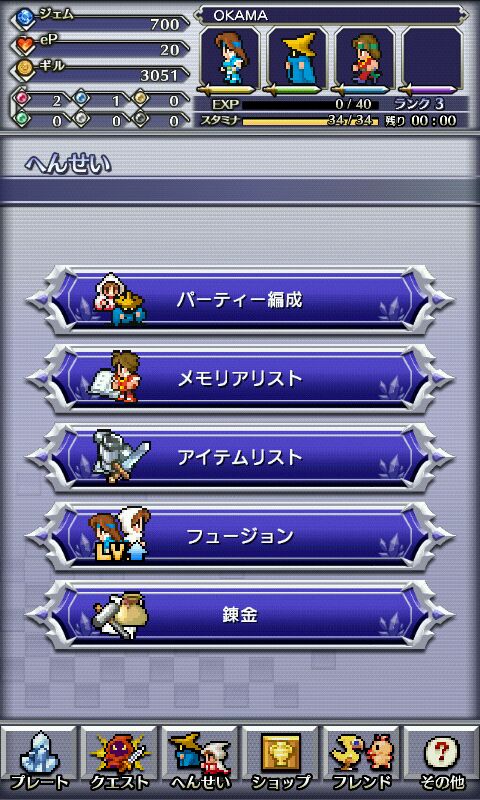 除此之外,角色的融合(フュージョン)跟裝備鍊金也都是在編制畫面中進行,角色的融合就是當取得特定素材時就可進行轉職的系統,也可以單純讓角色升級,不過以融合來升級時就必須犧牲另外一名角色才行。鍊金也是同樣的道理,只要有特定的素材就可強化武器防具以及技能魔法,這些系統玩家應該不陌生才對。