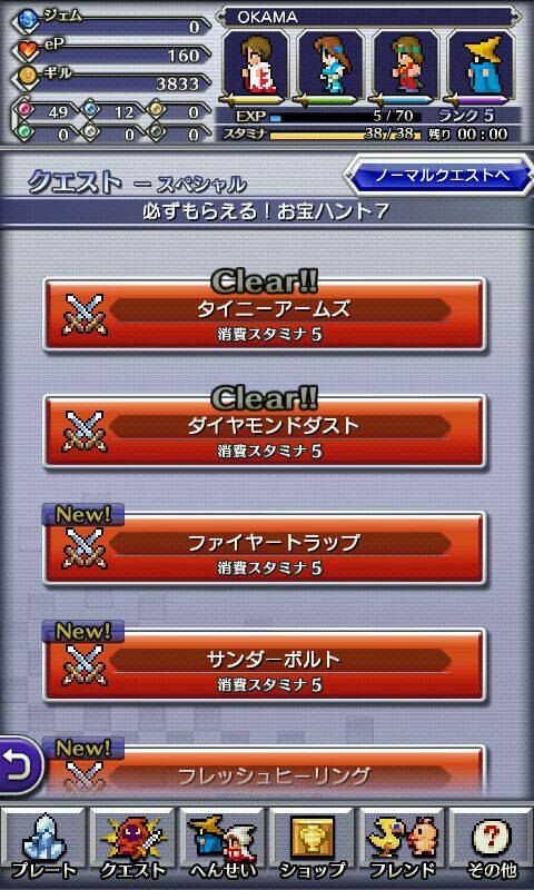過關後會進入結算畫面,會顯示玩家所得經驗值,金幣跟裝備以及素材等,某些任務(通常是特別任務)中還可獲得不同職業的角色,當獲得職業角色的時候,記得前往編制(へいせい)中將角色編入。而玩家除了可以組成 4 人小隊之外,還可邀請系統挑選出來的其他玩家角色一名協力前往任務,如果玩家發現強力角色時,可別忘了在任務後向對方申請好友喔!